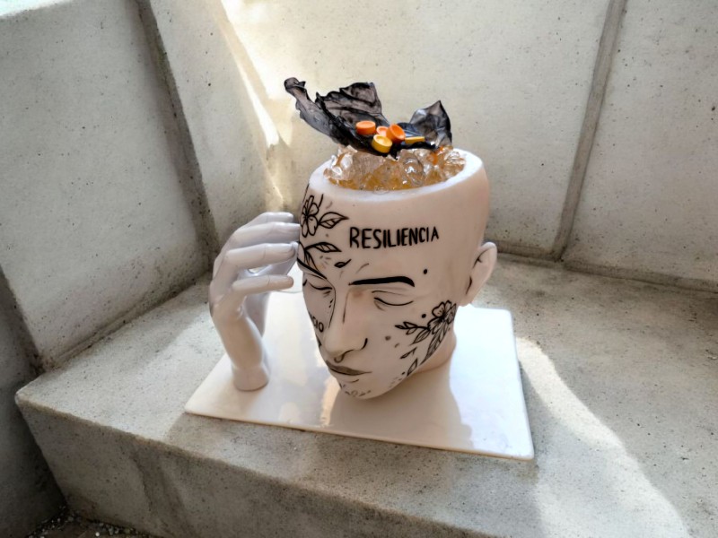 El sirope de Ume de Maison Routin 1883 aporta esa nostalgia dulce y ácida, como un recuerdo que duele pero enseña y la limonada de aceitunas de Le Tribute equilibra la mezcla con su toque salino, casi terapéutico. El resultado es una copa que no busca impresionar, sino hacer sentir. Se sirve en una cabeza con palabras grabadas como resiliencia y silencio. No por estética, sino por verdad. Porque todos, en algún momento, nos hemos servido un trago detrás de una sonrisa para no rompernos.